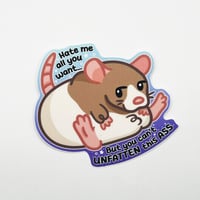 This Matte Vinyl sticker is water-resistant, scratch-resistant, and long-lasting. Measuring 3 inches wide, this Rat makes an excellent addition to a laptop, water bottle, binder, sketchbook,, etc...