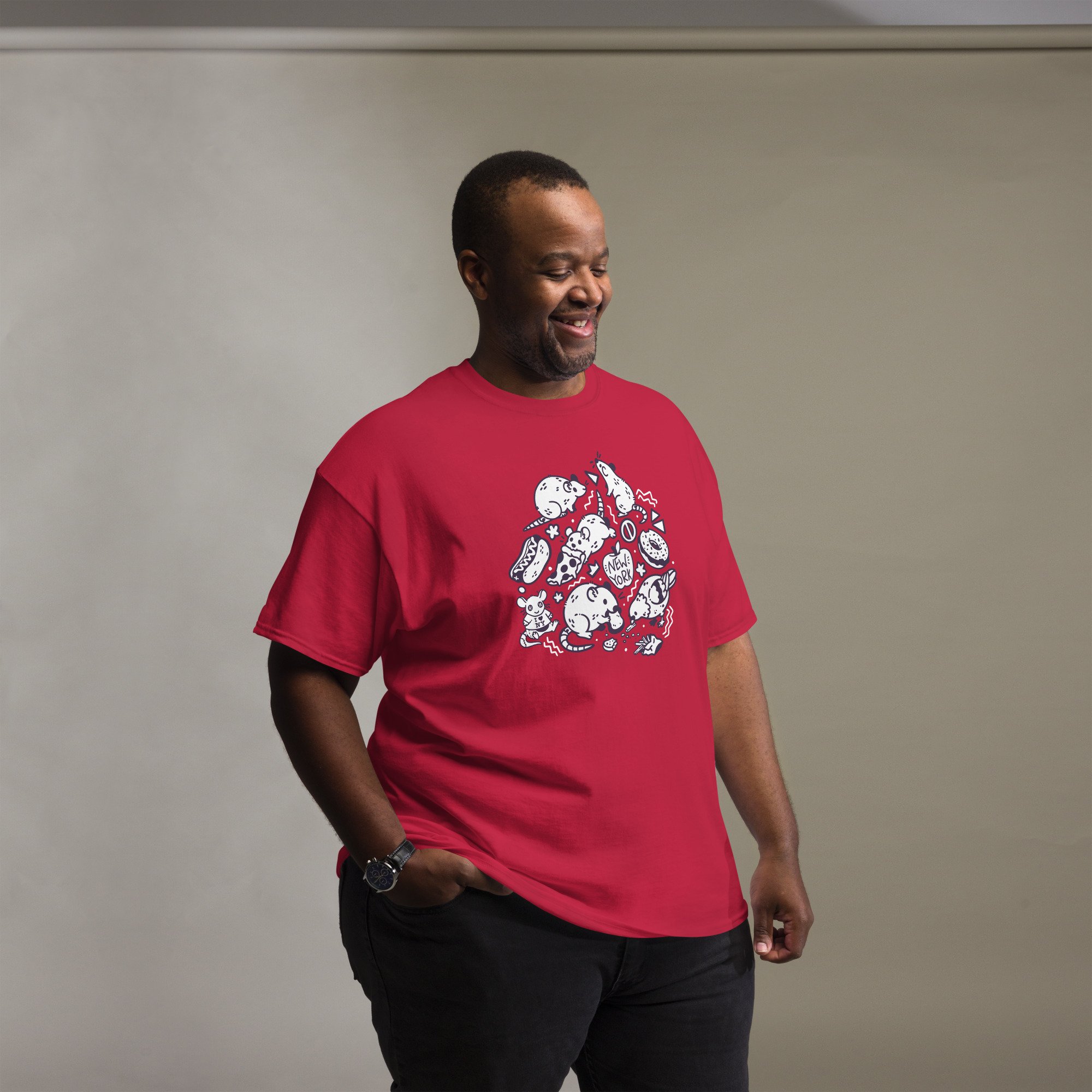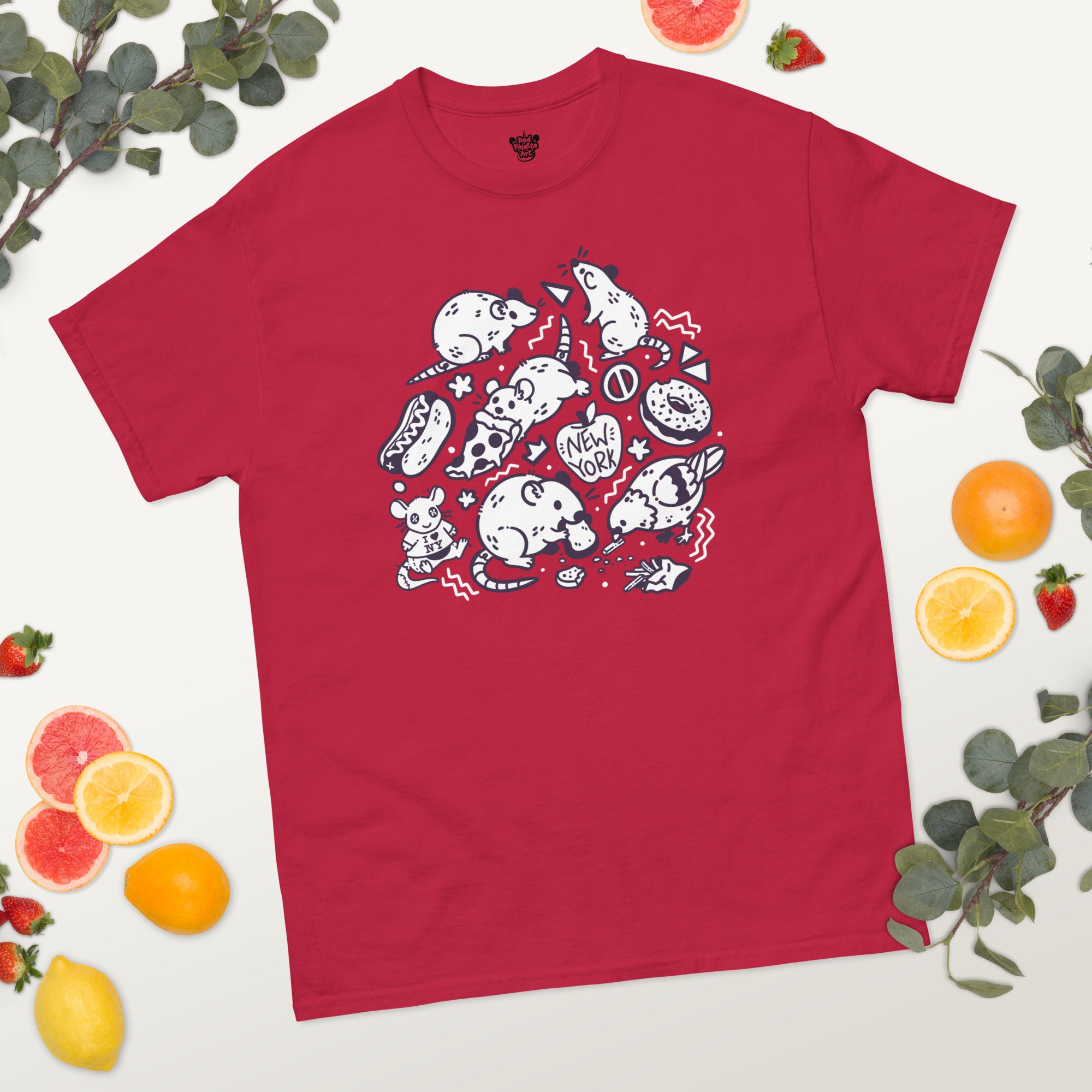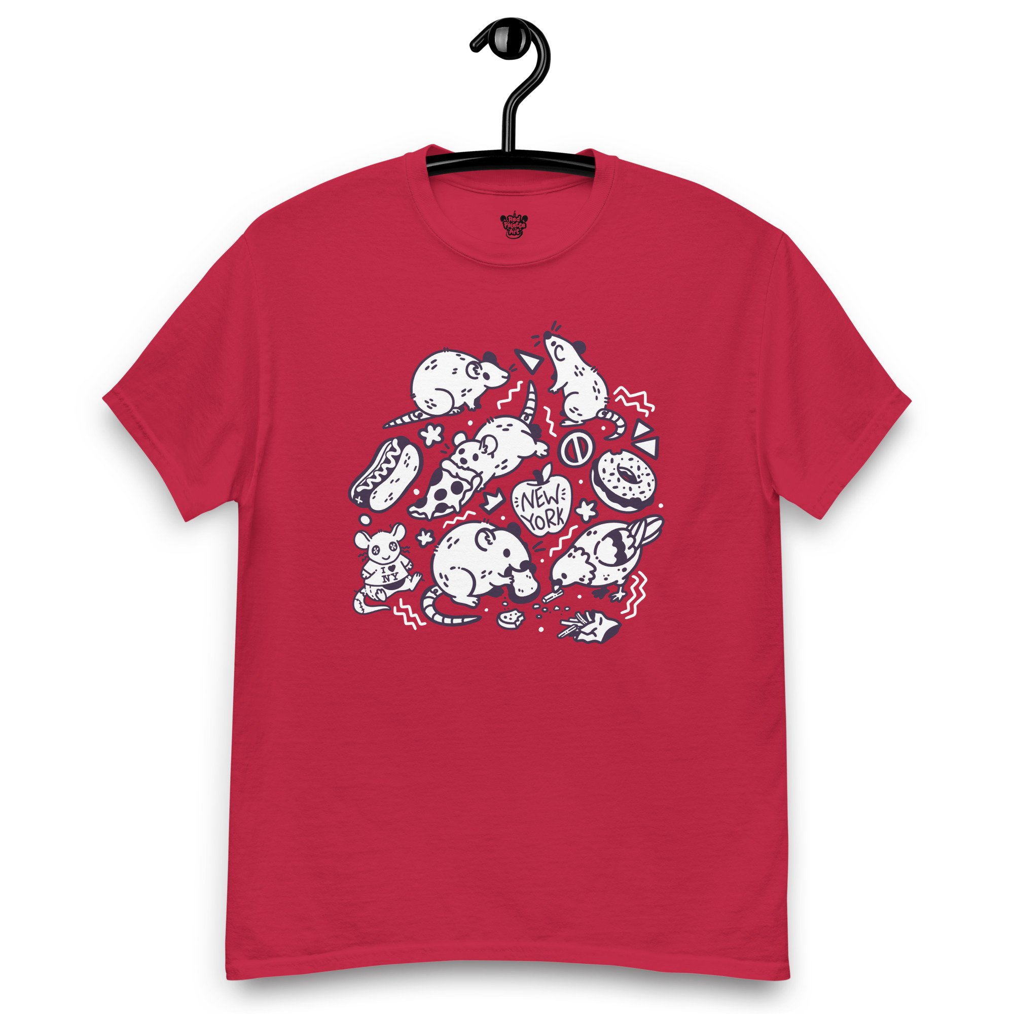 Bring a little NYC chaos energy to your wardrobe with this Pizza Rat tee, inspired by the iconic rats of New York City and a nod to my home back in America. Printed on a rich dark burgundy shirt with white and deep purple linework.