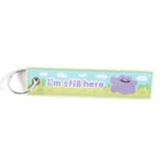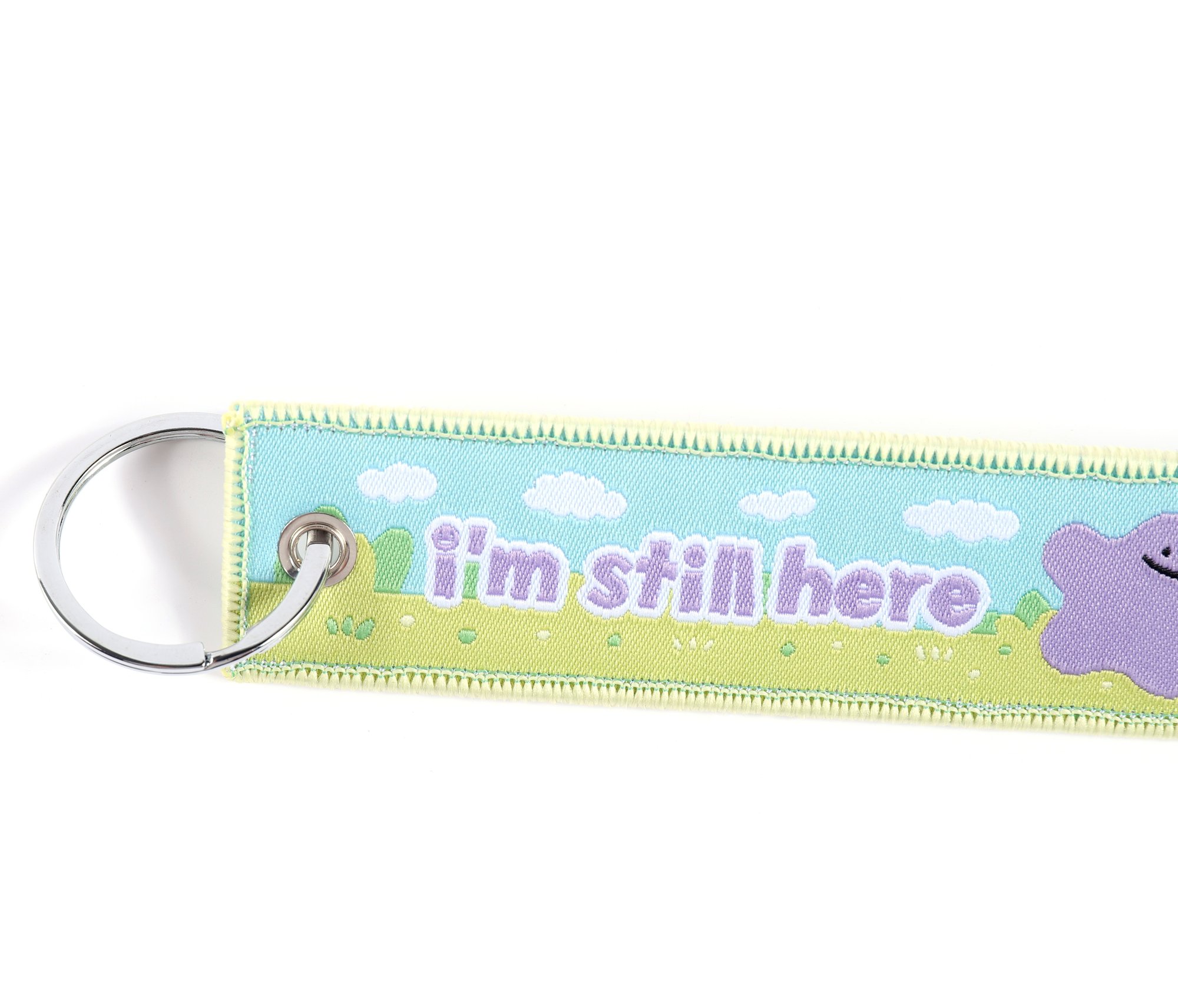 This embroidered keychain is inspired by Pokopia and features Ditto, with a soft light green border and fully embroidered details on both sides. Each keychain measures about 13 cm wide and 3 cm tall, making it a fun and eye-catching accessory for keys, bags, lanyards, or convention gear.