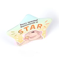 This star-shaped button is here to remind everyone that "star" spelled backwards is "rats"! A fun and quirky addition to any collection, this button measures 58mm (2.3 inches) and stands out with its unique shape. With a matte textured finish, it's the perfect accessory for jackets, bags, hats, or lanyards.